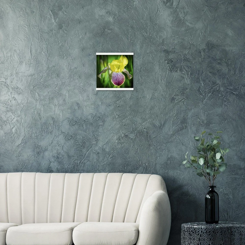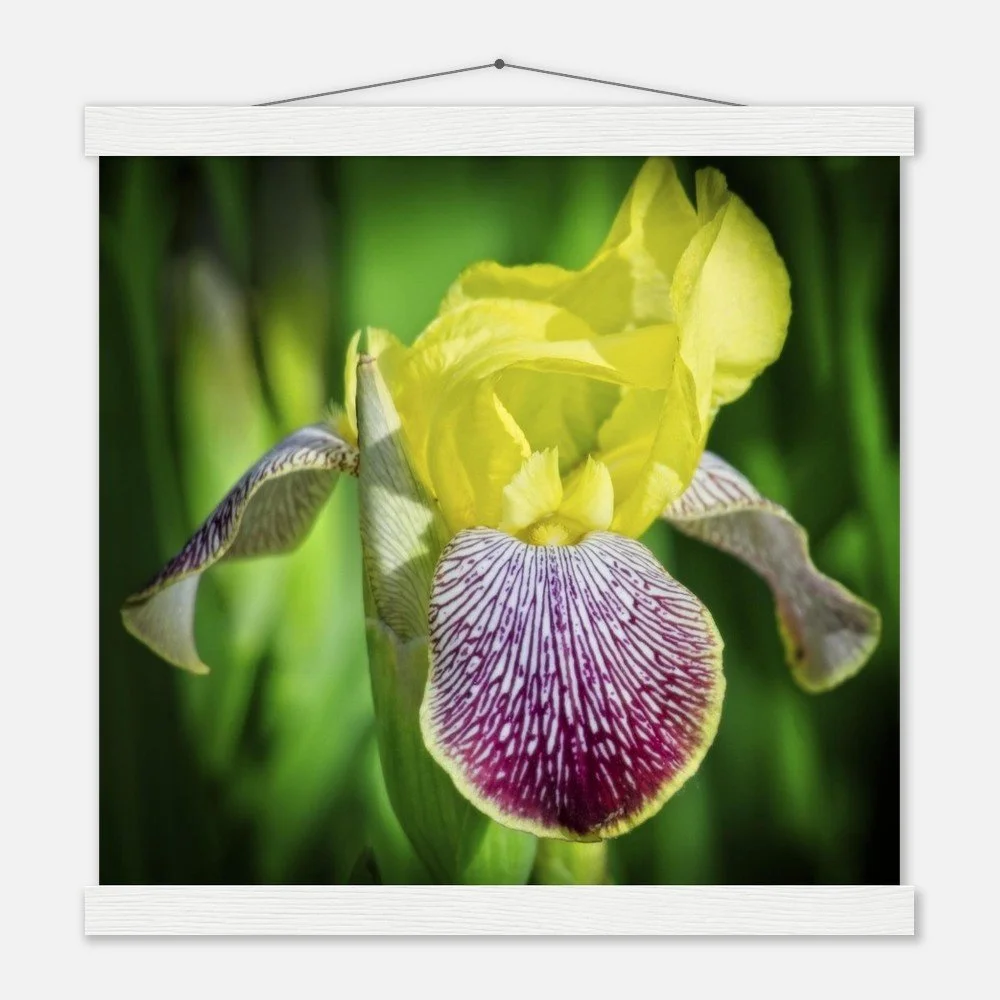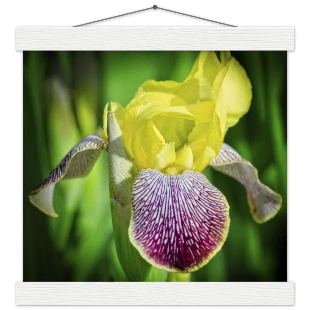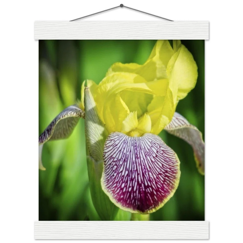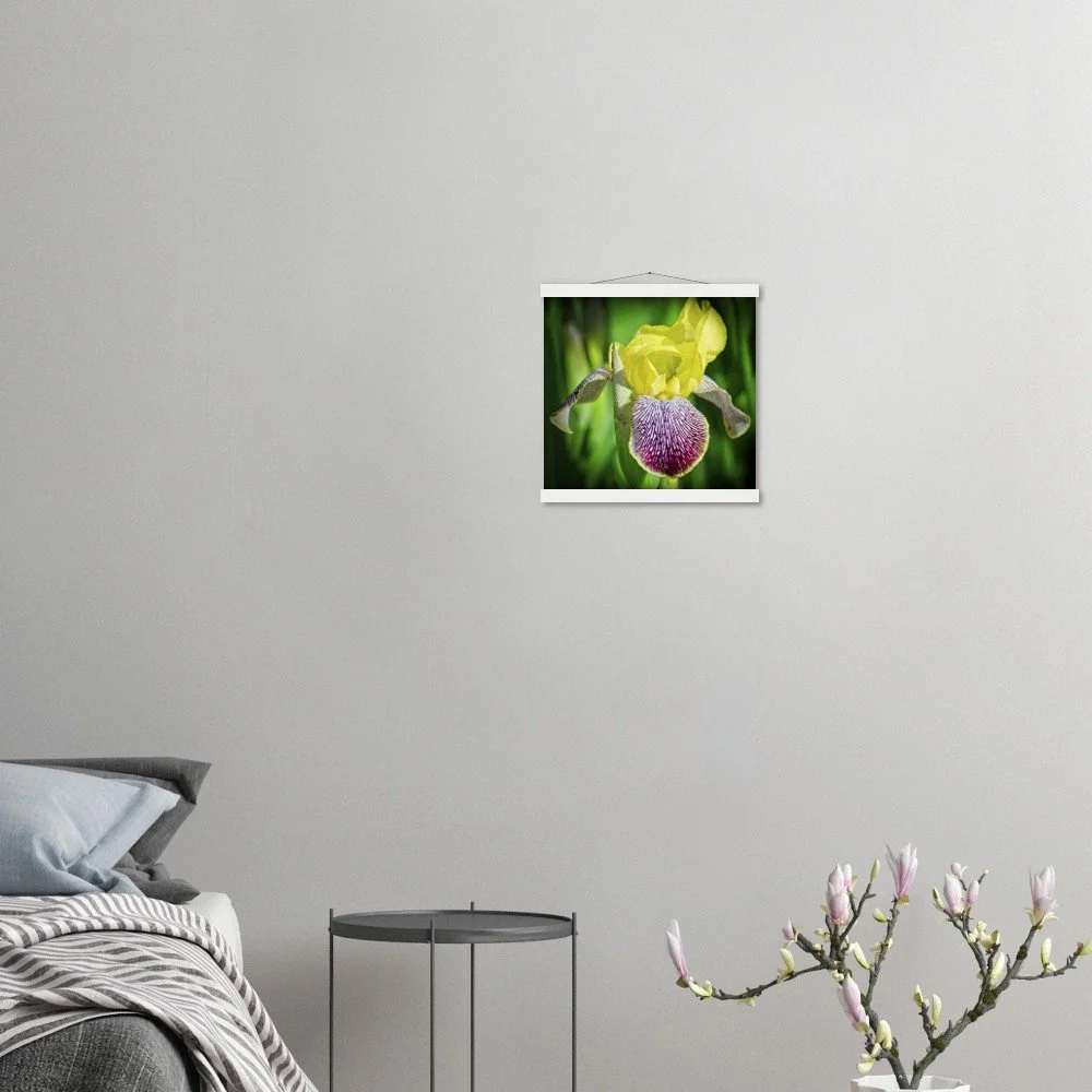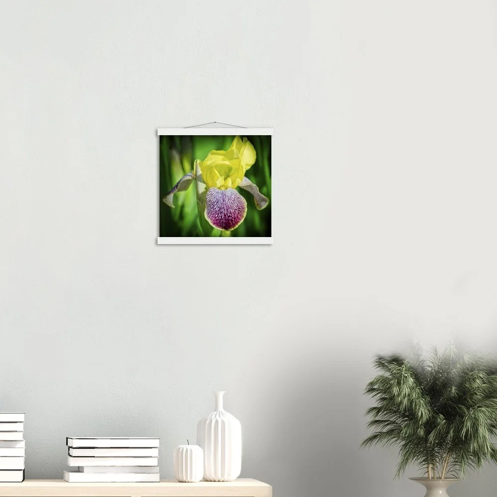 Bring the beauty of Riley Park's bearded irises into your home with this stunning art poster, capturing the charm of Calgary, Alberta. This print comes with a durable pine wood magnetic hanger, designed to protect your artwork and allow for effortless print changes. The high-quality 170 gsm semi-gloss paper features a subtle shine that makes the vibrant colors pop, while its sturdy 0.19 mm thickness ensures lasting durability. Printed on FSC-certified paper, it's an eco-conscious choice for indoor display. Available in 29 sizes to perfectly fit any space. Printed and shipped on demand with no minimum order – order yours today and add a touch of local beauty to your walls!