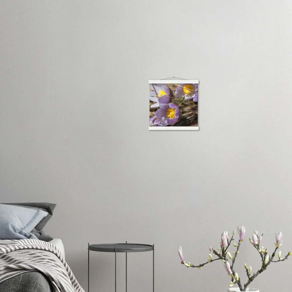 Capture the beauty of Calgary's Nosehill Park with this stunning Crocus poster. Featuring a vibrant image, this print comes with a durable pine wood magnetic hanger for easy, damage-free display and quick print changes. The high-quality 200 gsm matte paper offers a smooth, luxurious feel, printed on sustainable, FSC-certified materials. Available in 29 sizes, it's perfect for bringing a touch of Alberta's natural splendor indoors. Order yours today and elevate your space!