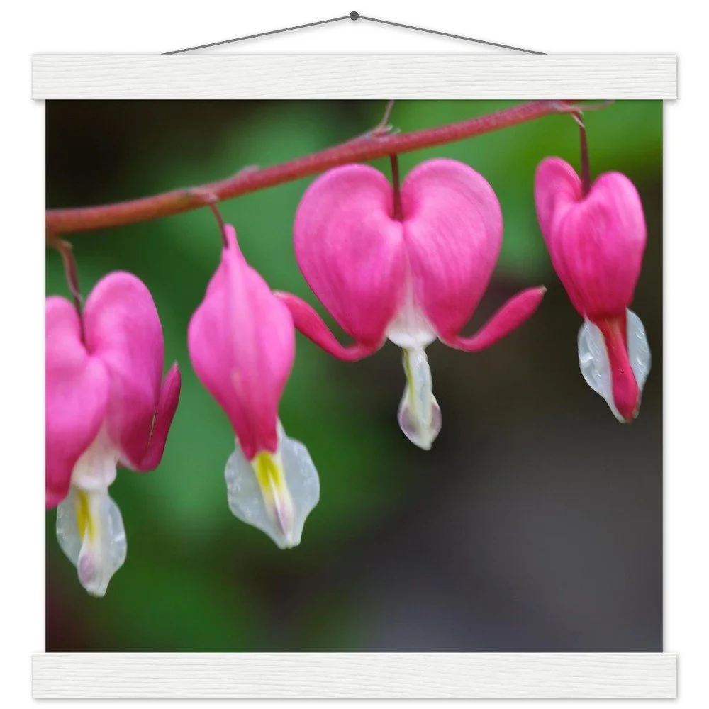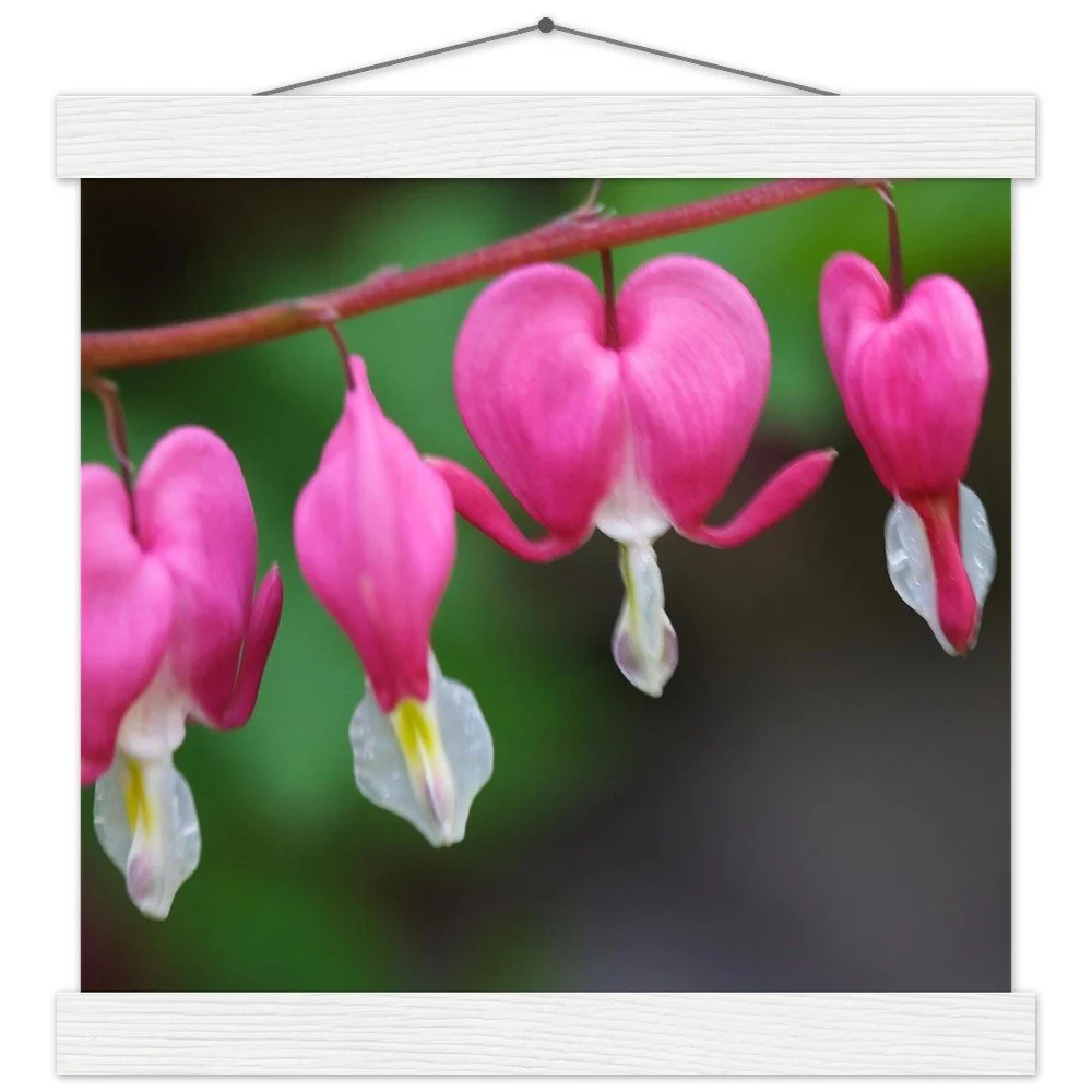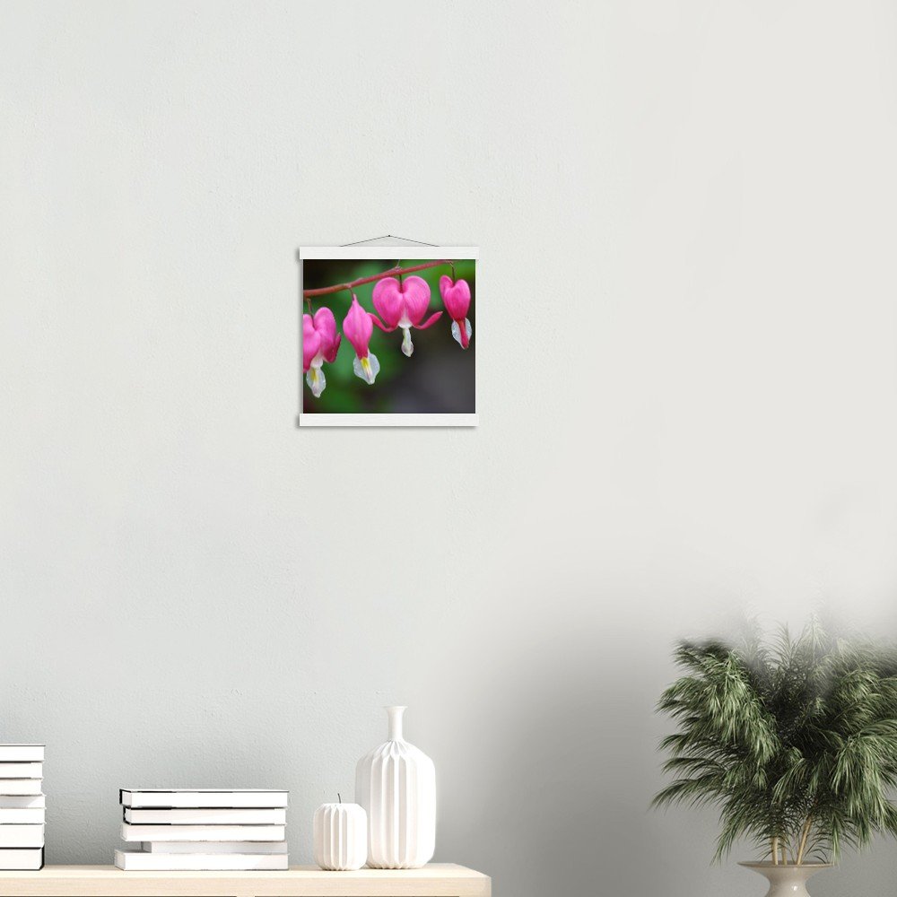 Asian Bleeding Hearts Poster with Magnetic Wood Hangers