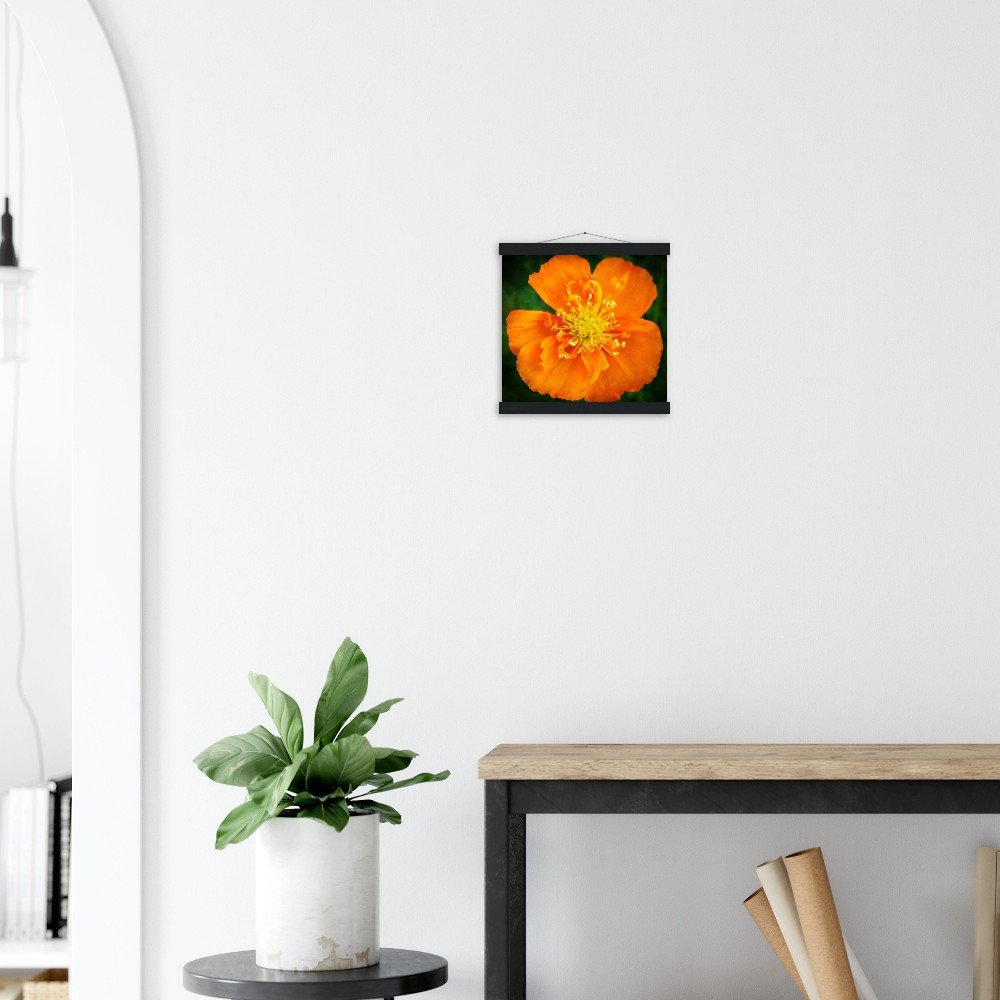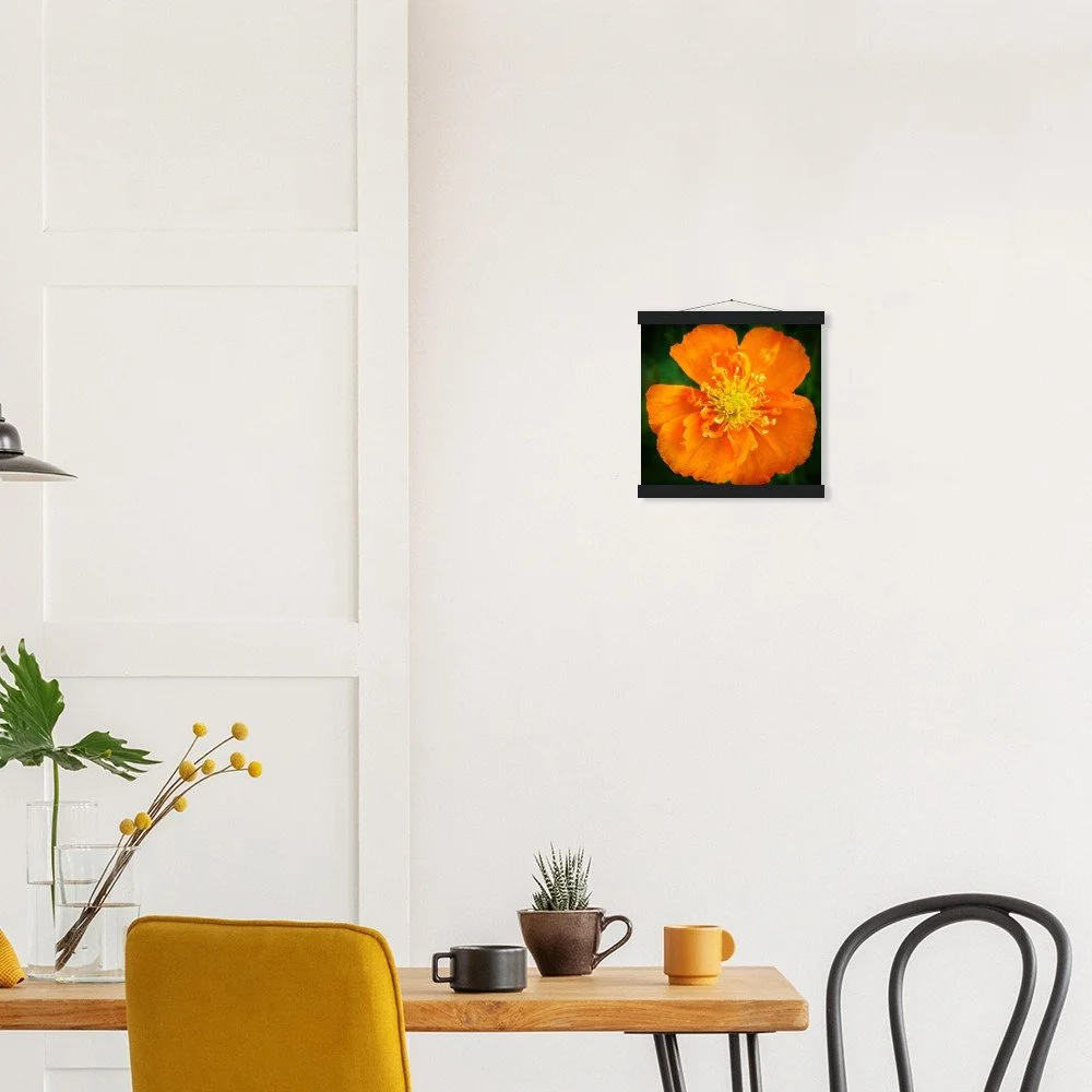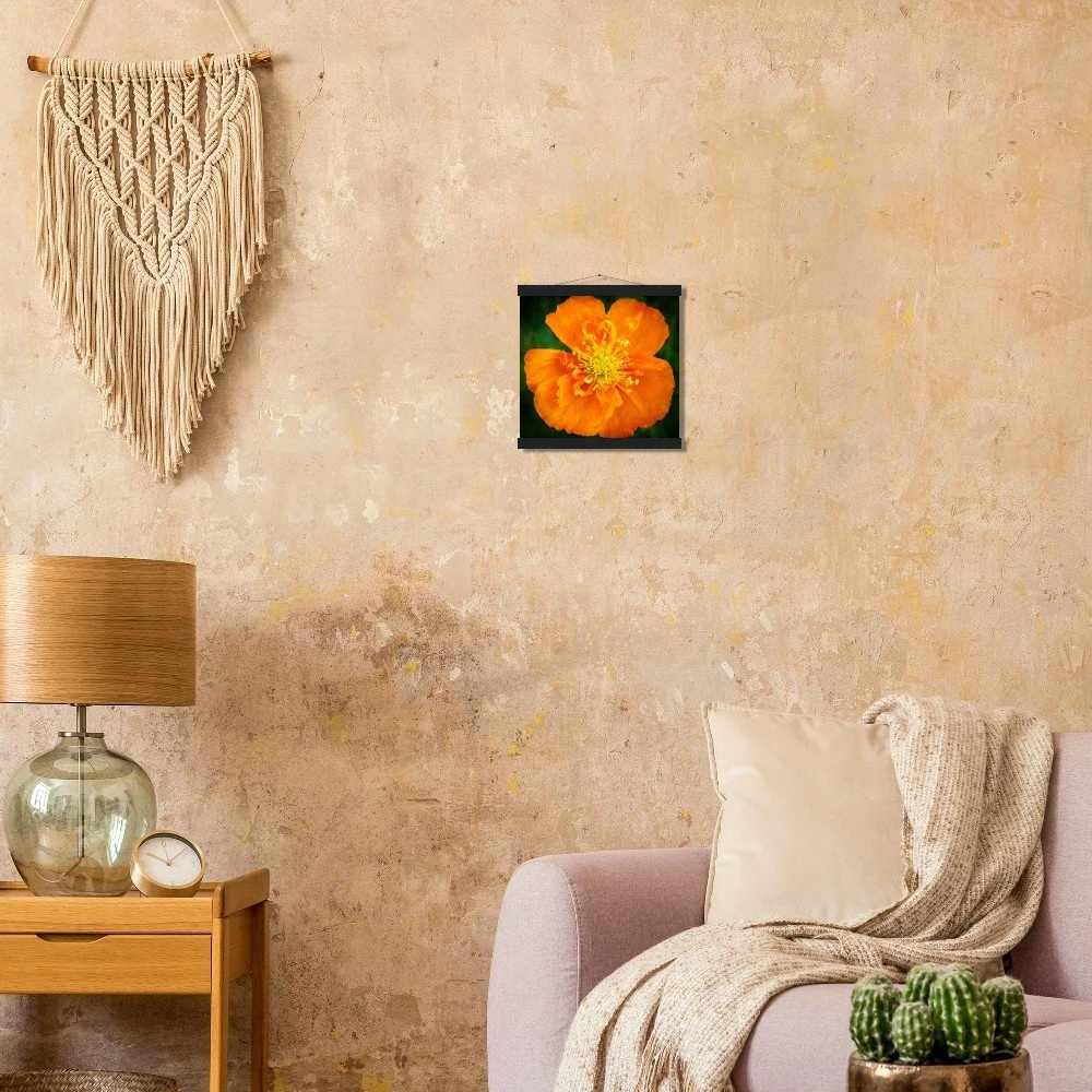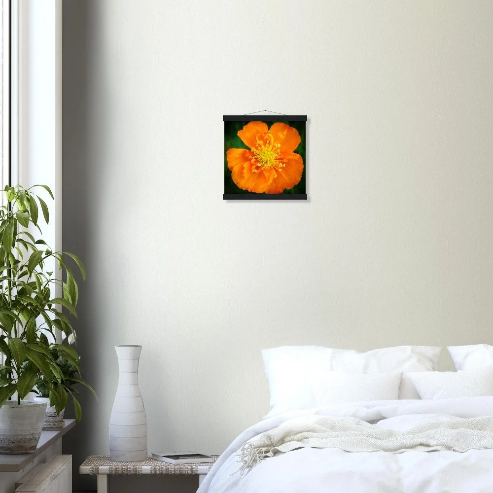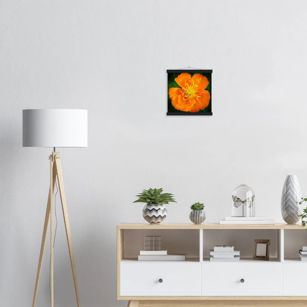 Elevate your space with our stunning Poppy Calgary Alberta art print, beautifully displayed in a natural pine wood magnetic hanger. This eco-friendly, FSC-certified poster features a smooth, matte finish on sturdy 170 gsm paper, offering a luxurious feel and lasting durability for indoor display. The clever magnetic hanger design prevents any damage to your print and allows for effortless swapping of artwork. Available in 29 sizes to perfectly fit any wall, and printed on demand just for you. Add a touch of Alberta's beauty to your home today!