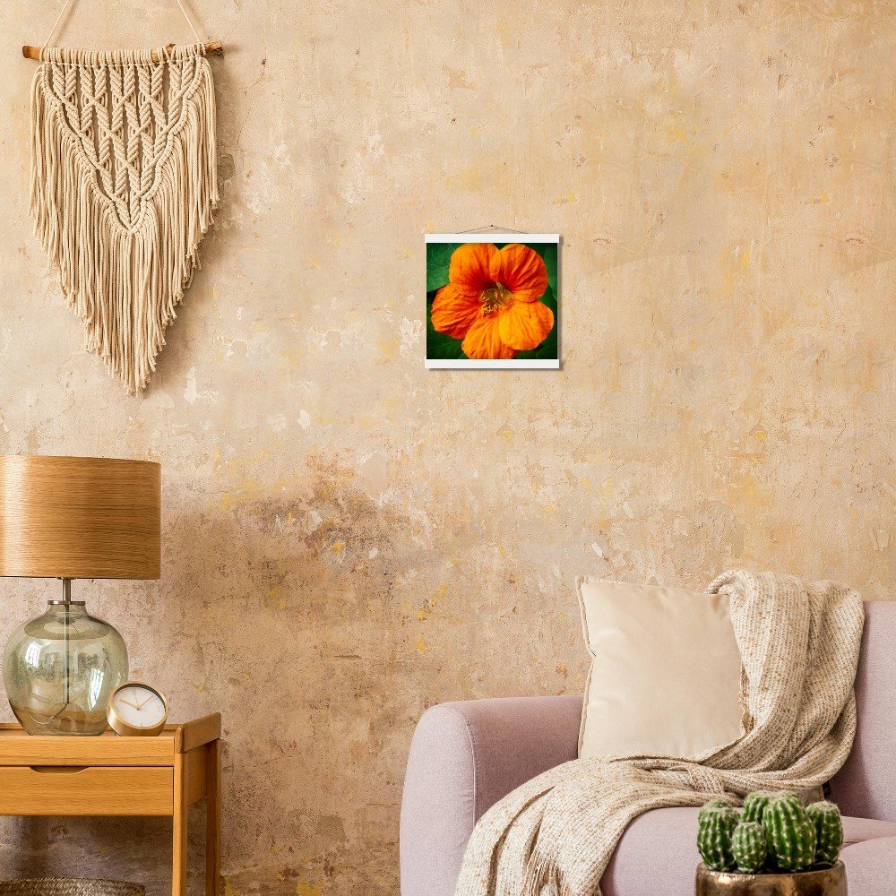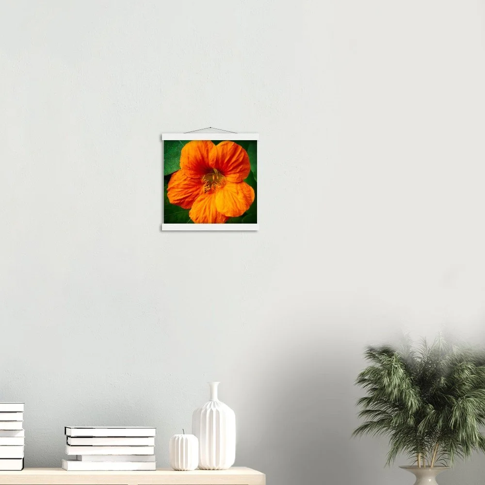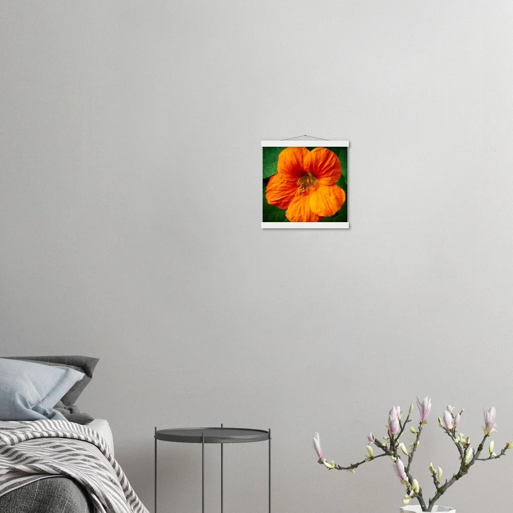 Bring the beauty of Calgary, Alberta, Canada into your home with this stunning Nasturtium poster. Featuring a vibrant design, it's printed on high-quality, FSC-certified 170 gsm matte paper for a luxurious, uncoated feel. The included magnetic wood hanger system ensures your poster is displayed beautifully without damage, allowing for easy print swaps. Crafted from durable pine, the hanger offers a sleek and sturdy finish. Available in 29 sizes, this poster is perfect for indoor display and printed on demand just for you. Elevate your decor with this unique piece of Canadian art. Shop now!