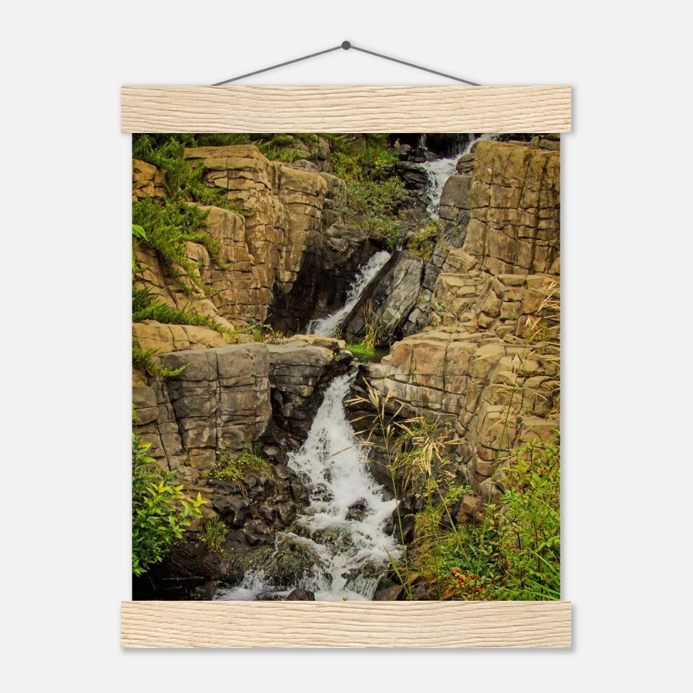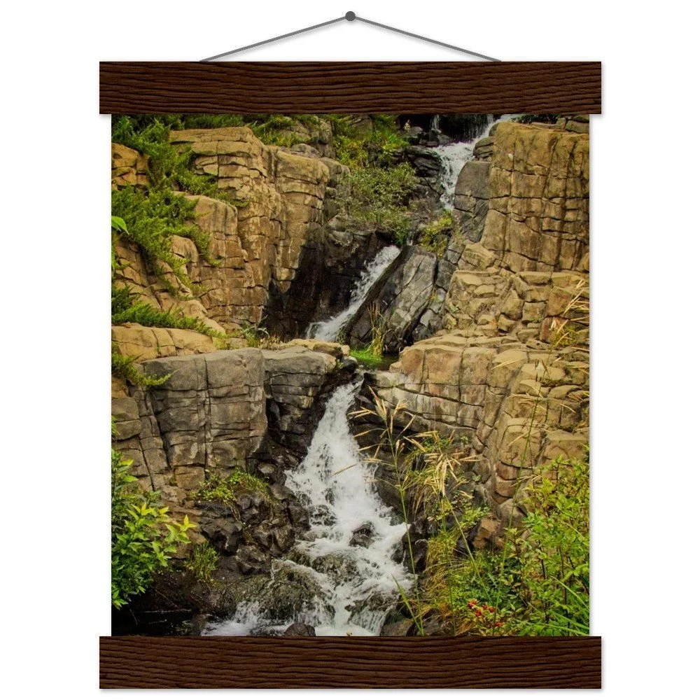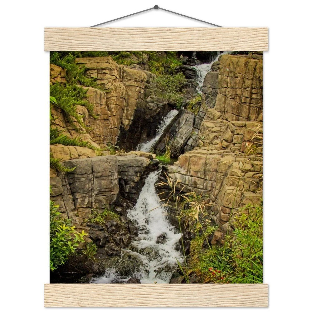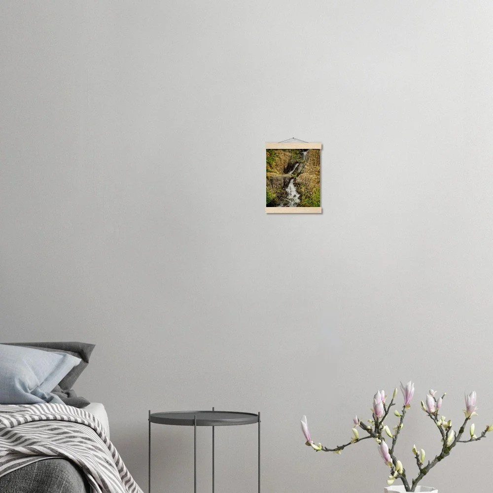 Bring the majesty of the Calgary Zoo's Prehistoric Park Waterfalls into your home with this stunning art print. Featuring a smooth, matte finish on 170 gsm FSC-certified paper, this poster offers a luxurious, uncoated feel. The included durable pine wood magnetic hangers protect your print and allow for effortless updates, making it a versatile and eco-conscious decor choice. Available in 29 sizes, it's perfect for any indoor space. Printed and shipped on demand with no minimum orders. Elevate your space with this unique piece of Alberta's natural beauty.