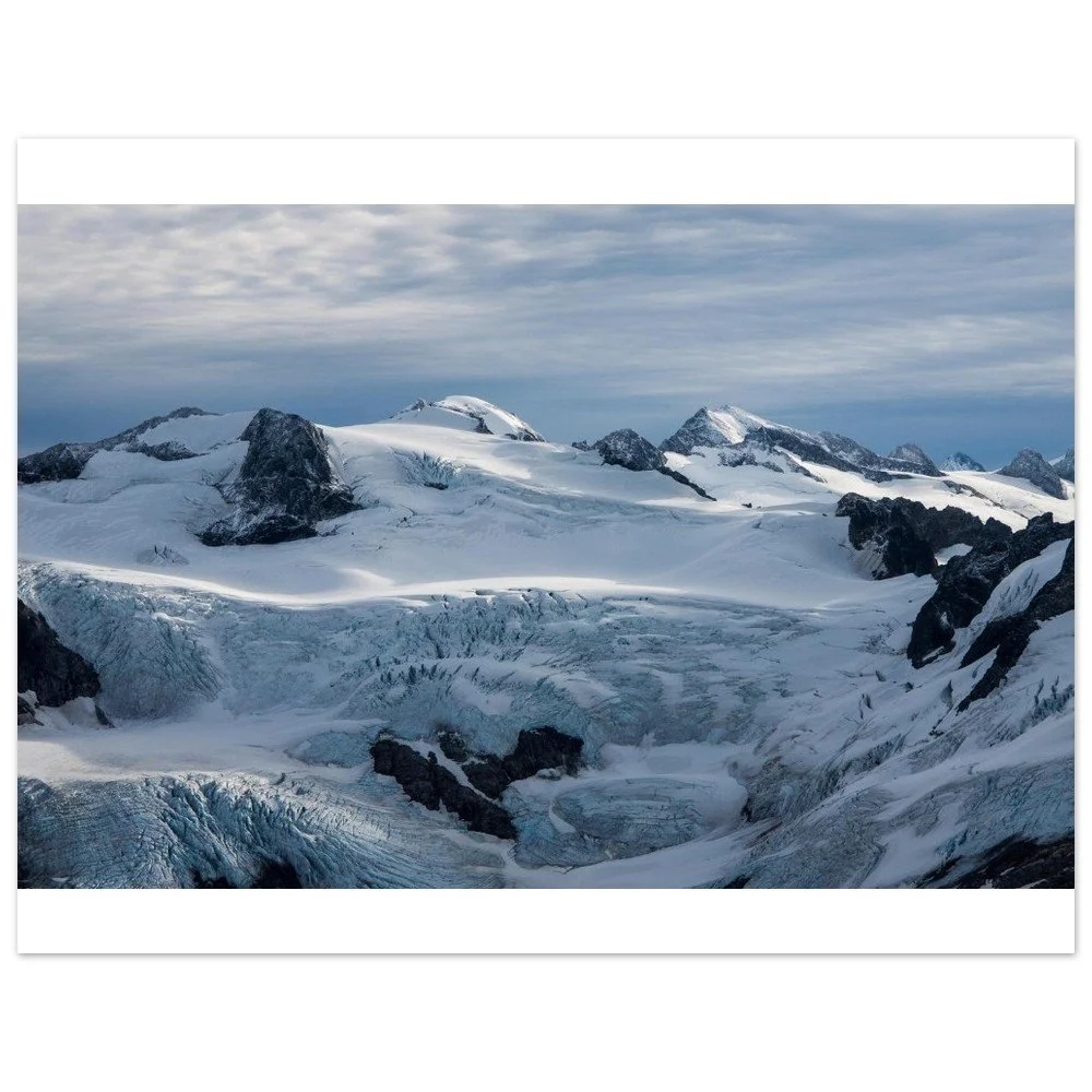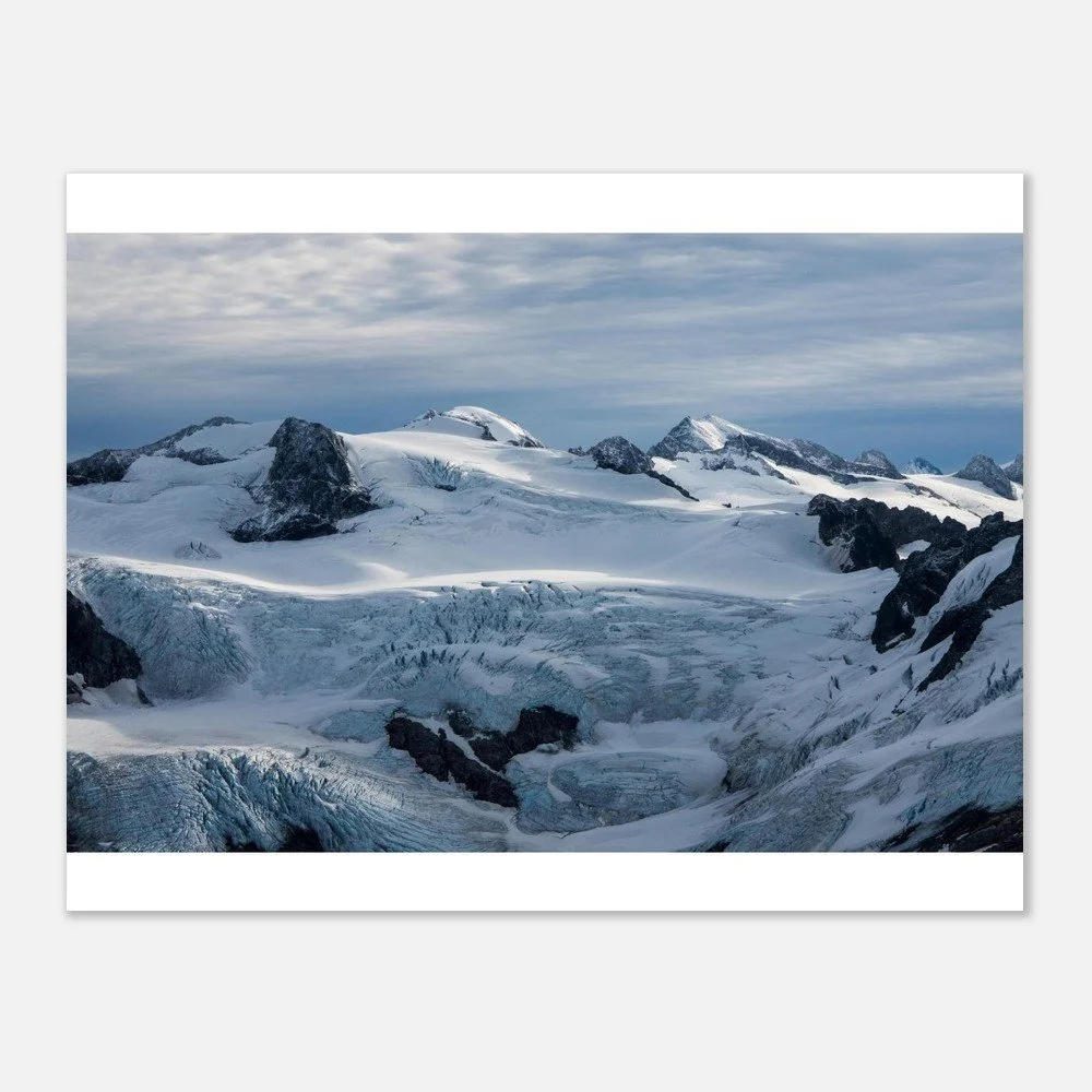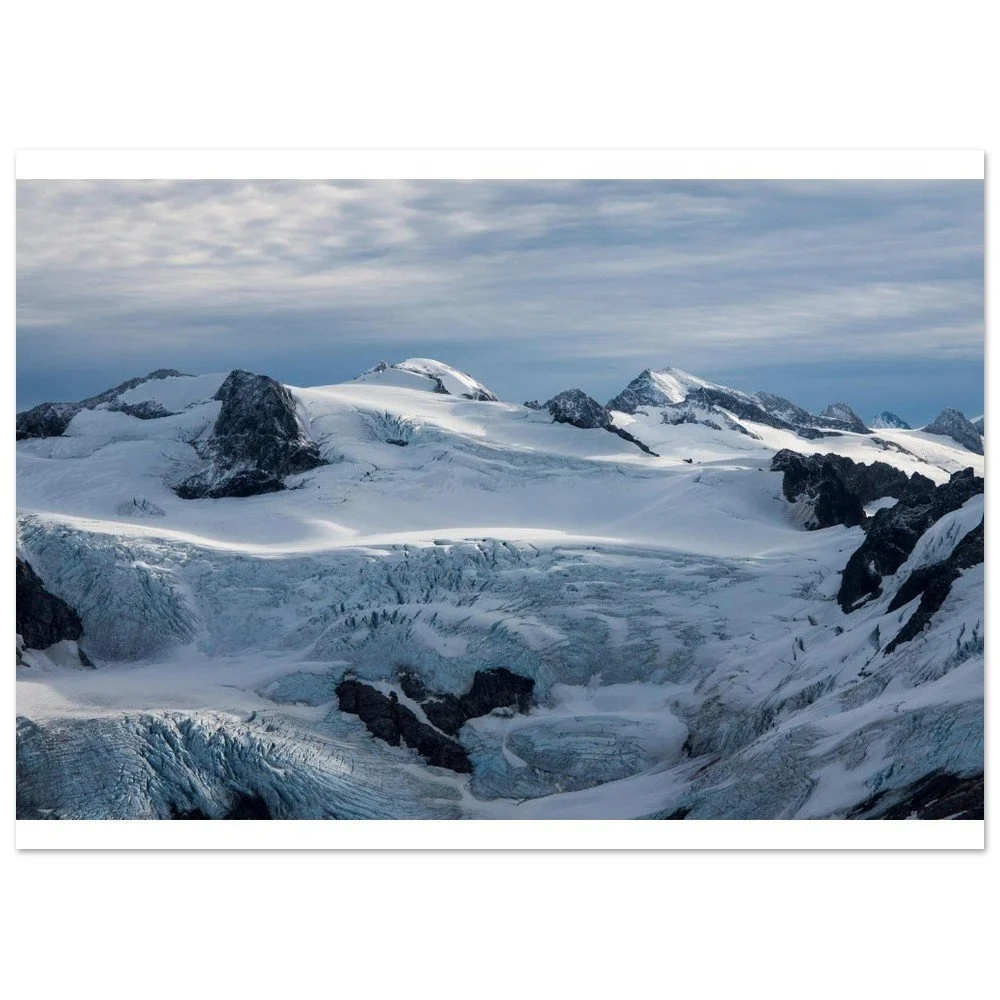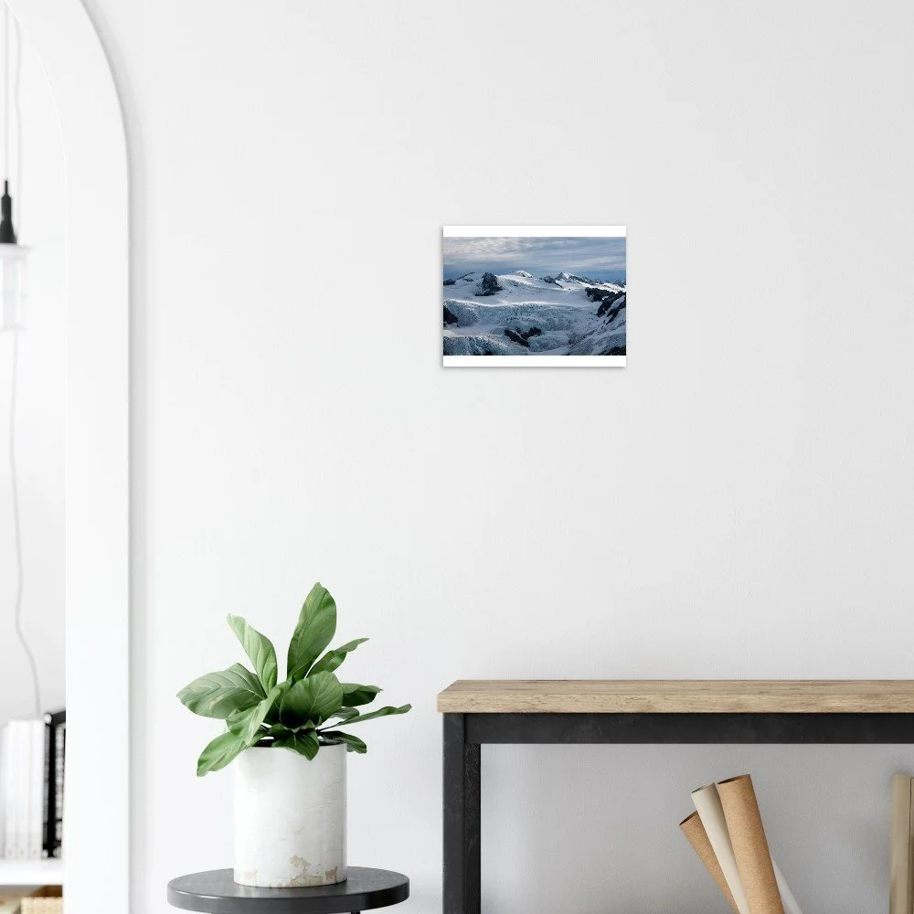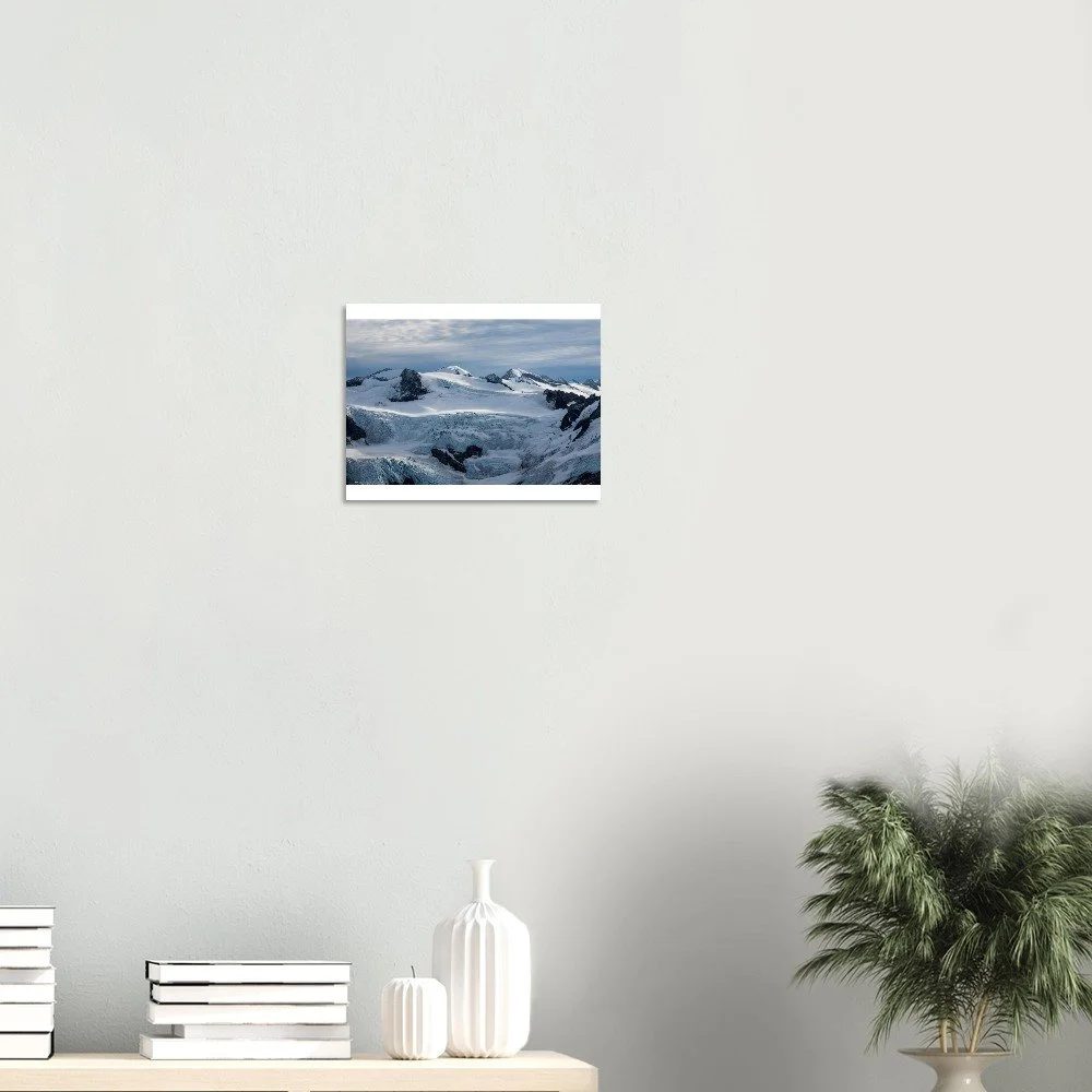 Bring the mystique of Alaska's breathtaking Meade Glacier into your home with this striking poster. Printed on classic matte paper, the image captures the awe-inspiring beauty of this natural wonder, complete with pristine ice formations and glistening blue hues. Perfect for nature lovers and travel enthusiasts alike.